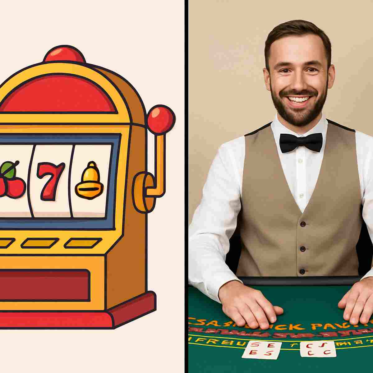 The distinction between live dealer games vs traditional online casino games comes down to how the results are made. Here’s the simplest way to see it: