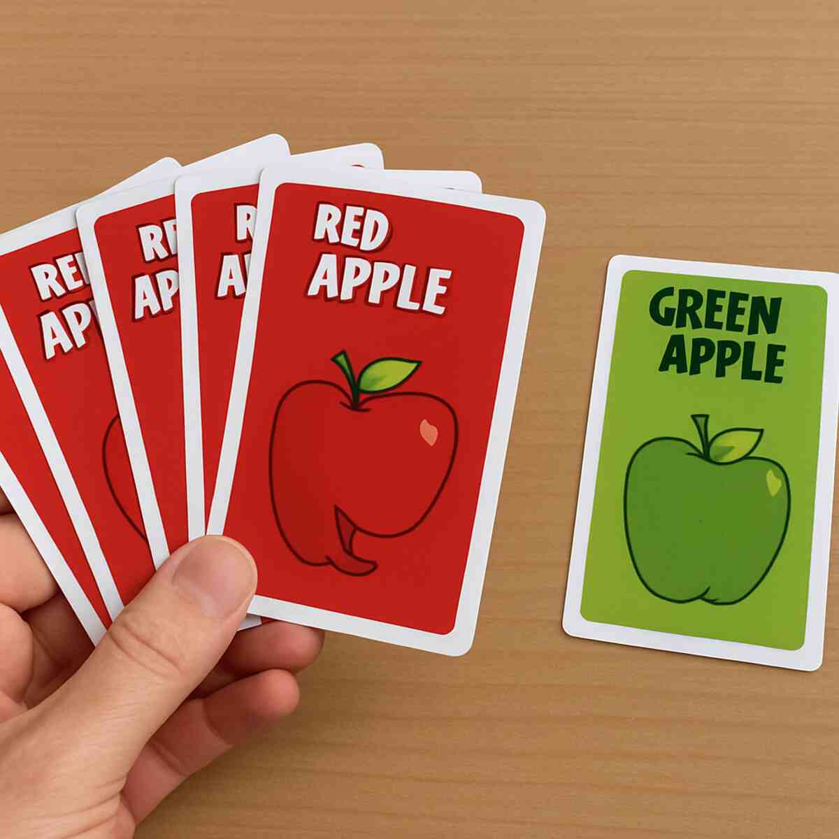 The Green Apple card you win is more than a souvenir—it’s how you score. Think of each Green Card as one point. As you win rounds, stack these cards in front of you. This makes it easy for everyone to see who’s in the lead. The goal is simple: be the first player to collect a certain number of Green Cards.