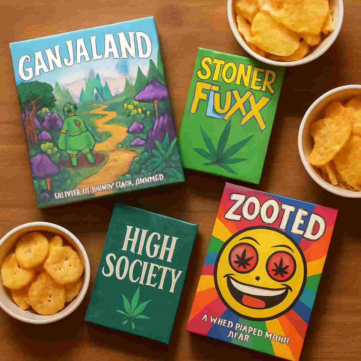 • Stoner Fluxx: Best for chaos and unpredictability. (2-6 players, 15-30 mins).