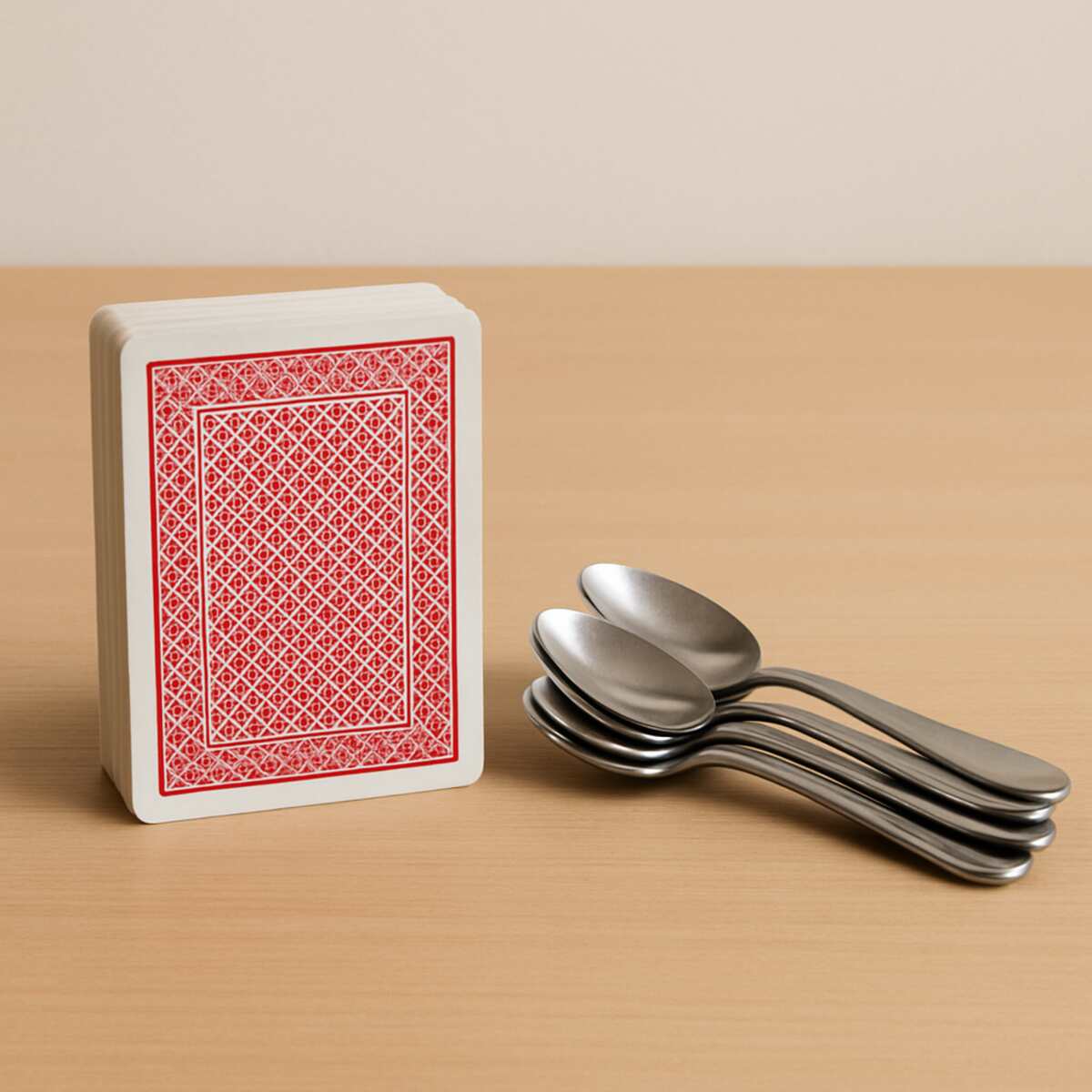 Getting the game started is quick and easy. First, arrange the spoons (or whatever objects you’re using) in a small circle in the middle of the table. The key is making sure everyone has an equal chance to lunge for them—you don’t want to give anyone an unfair reach! Once the objects are set, one person takes the role of the dealer, shuffles the deck, and deals exactly four cards to every player, face down.